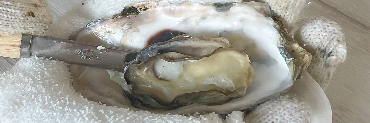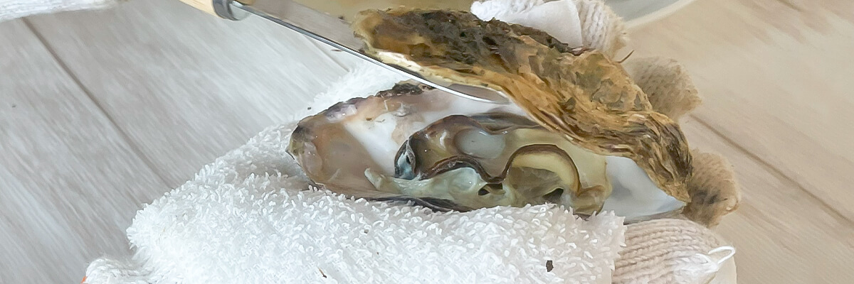 加熱した殻付き牡蠣のむきかた